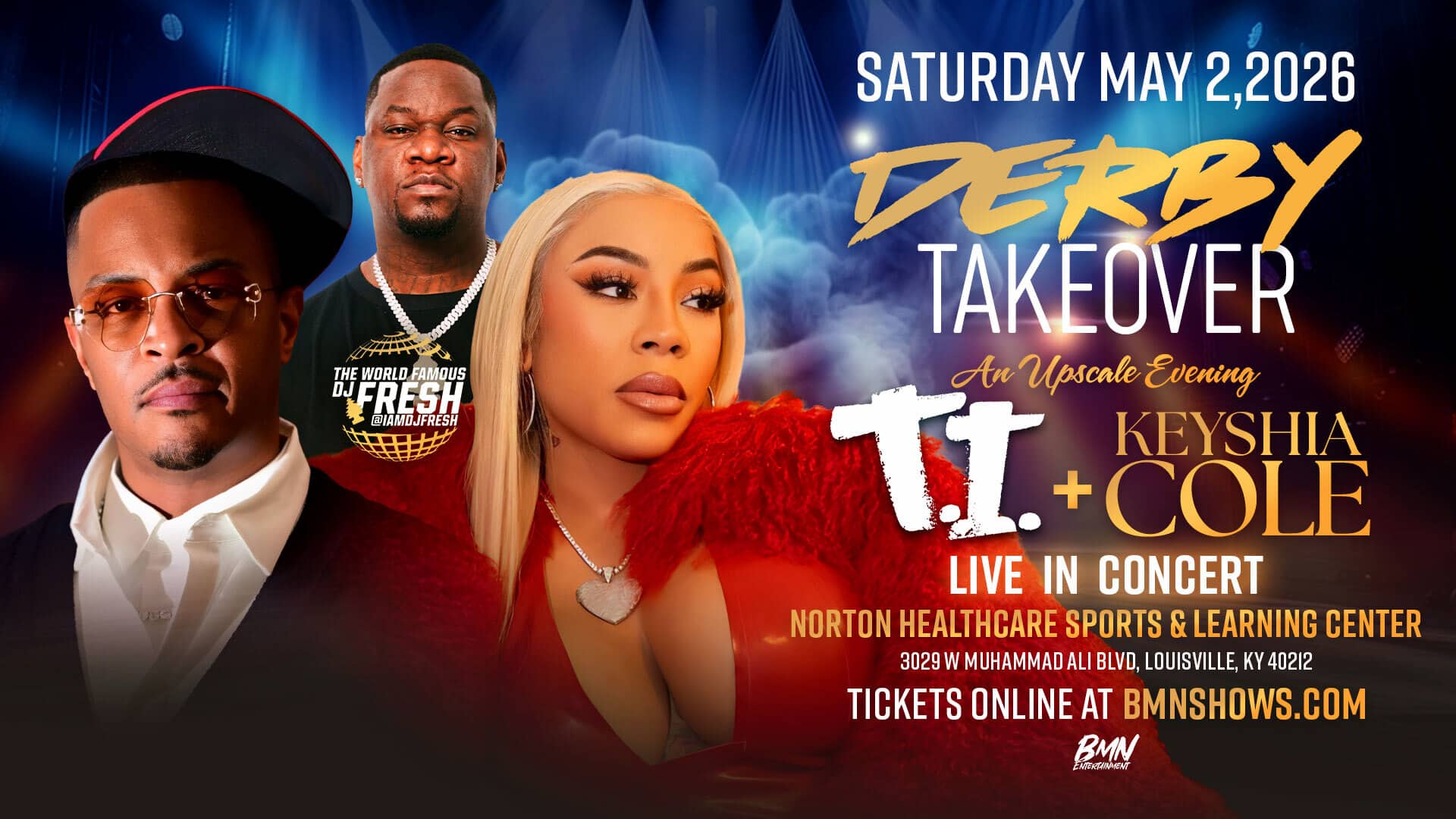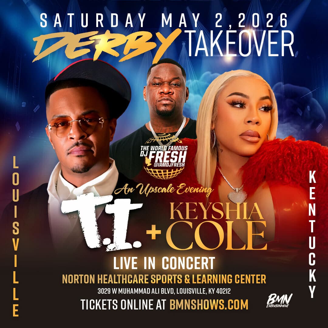 Derby Takeover featuring T.I. and Keyshia Cole comes to Louisville, KY on May 2, 2026. Join us for an upscale night of hip hop and R&B at Norton Healthcare Sports & Learning Center with the World Famous DJ Fresh. Tickets available now.