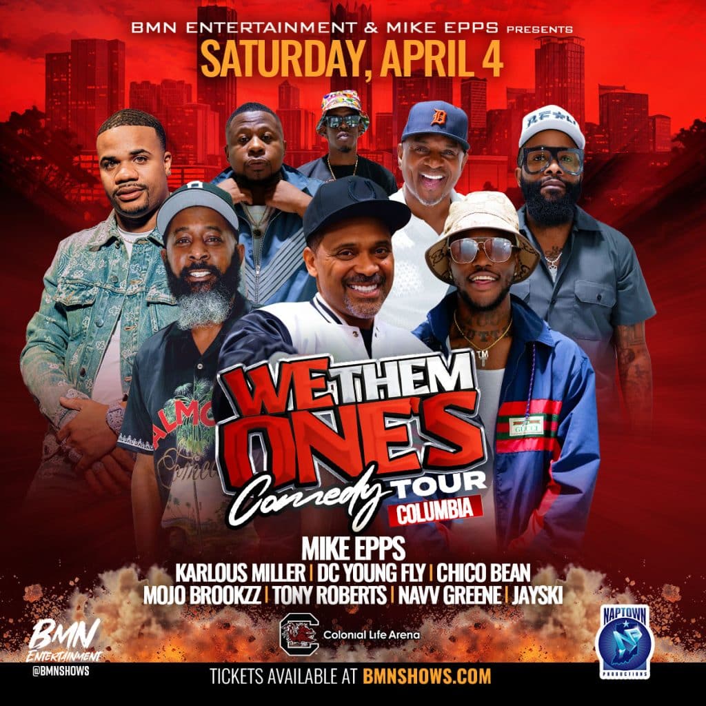 Columbia, SC Saturday April 4, 2026 Columbia, SC Colonial Life Arena Mike EppsKarlous MillerDC Young FlyChico BeanMojo BrookzzTony RobertsNavv GreeneJaySki BUY TICKETS