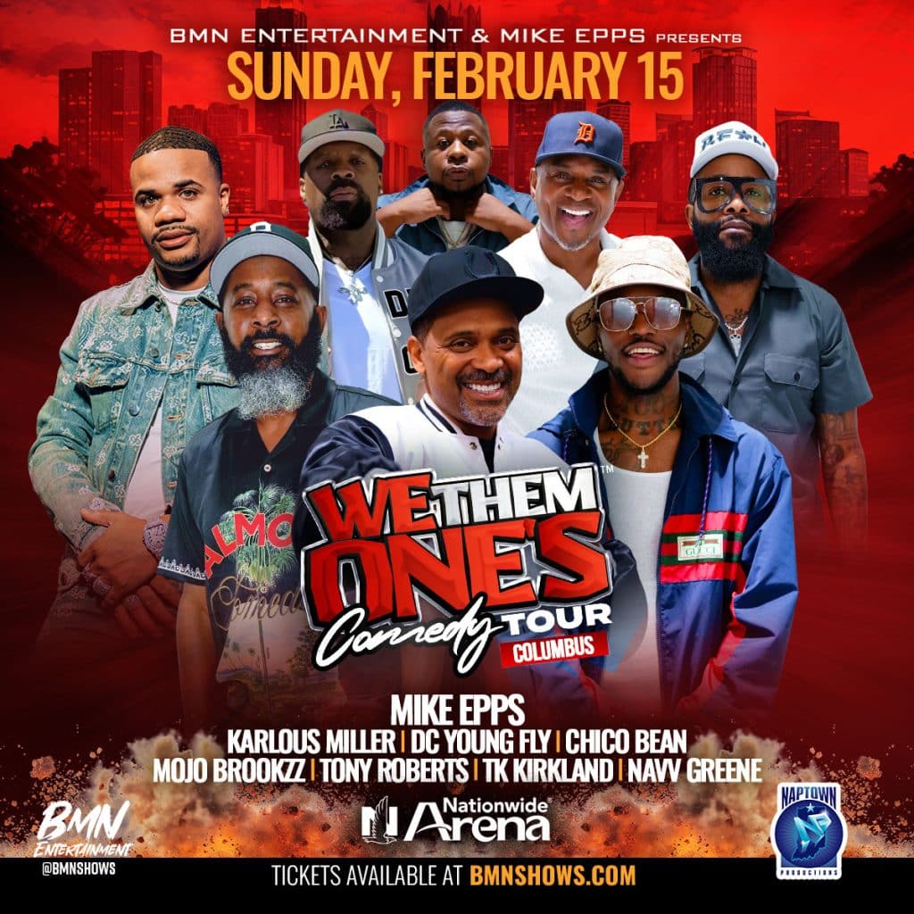 Columbus, OH Sunday February 15, 2026 Columbus, OH Schottestein Center Mike EppsKarlous MillerDC Young FlyChico BeanMojo BrookzzTony RobertsTK KirklandNavv Greene BUY TICKETS