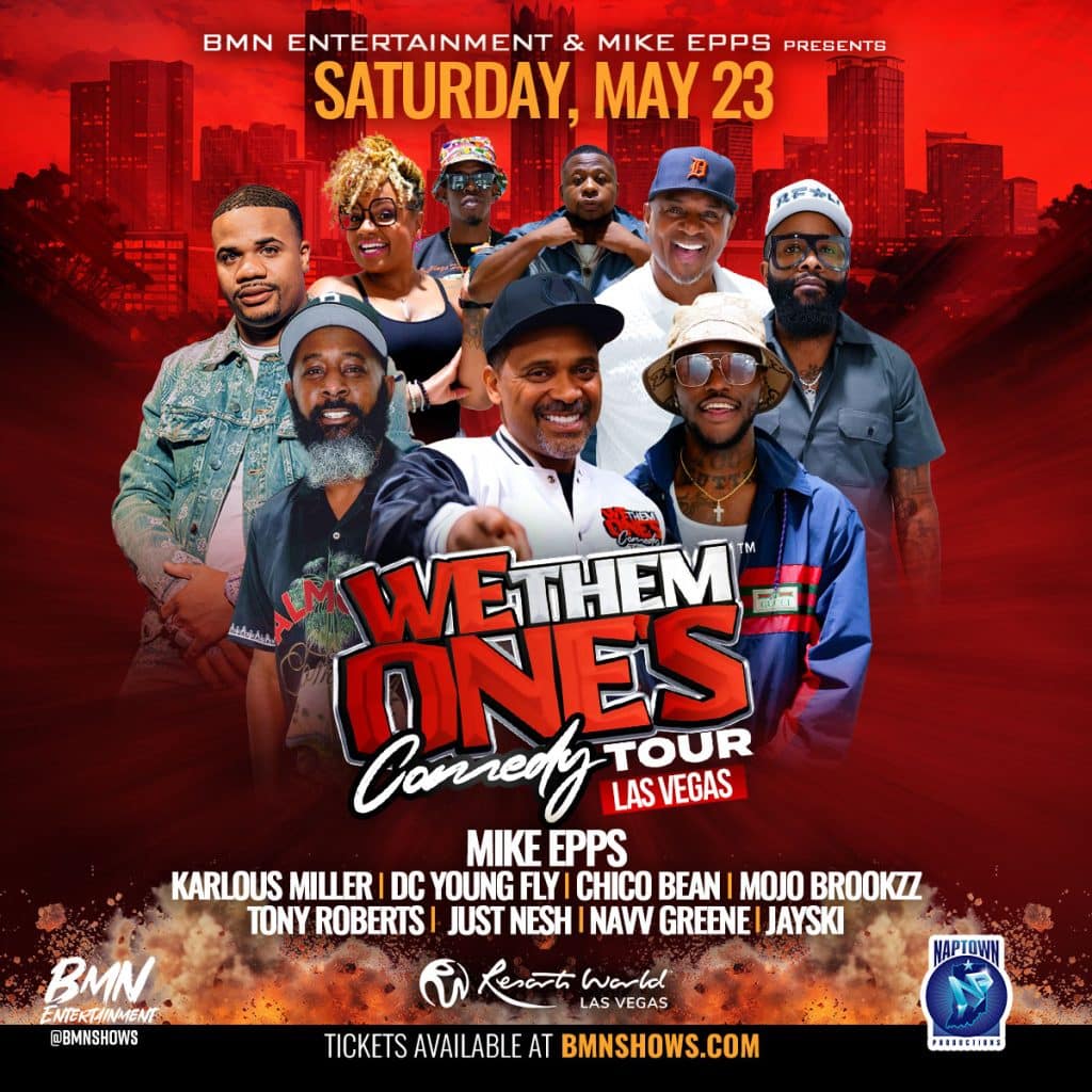 Las Vegas, NV Saturday May 23, 2026 Las Vegas, NV Resort World Casino Mike EppsKarlous MillerDC Young FlyChico BeanMojo BrookzzTony RobertsJust NeshNavv GreeneJaySki COMING SOON